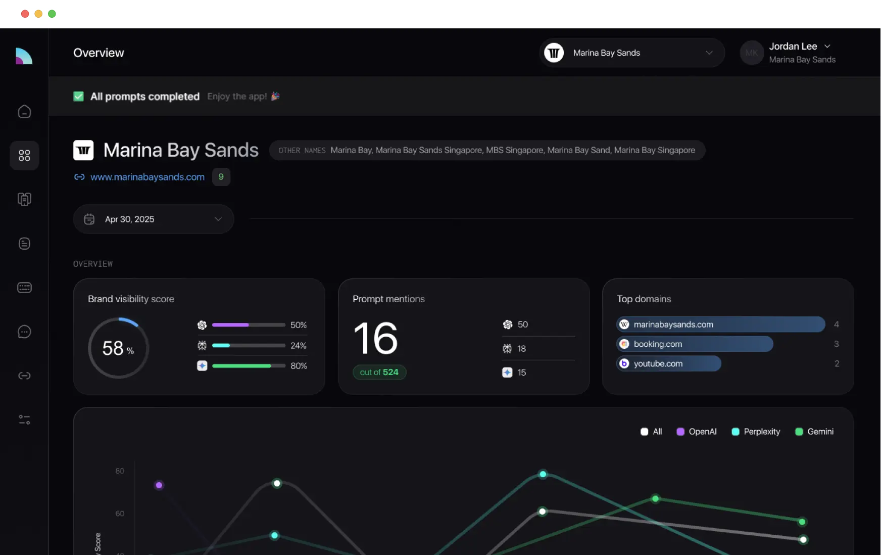 Use a proprietary visibility score to track how often and how prominently your brand is referenced in AI-generated answers.