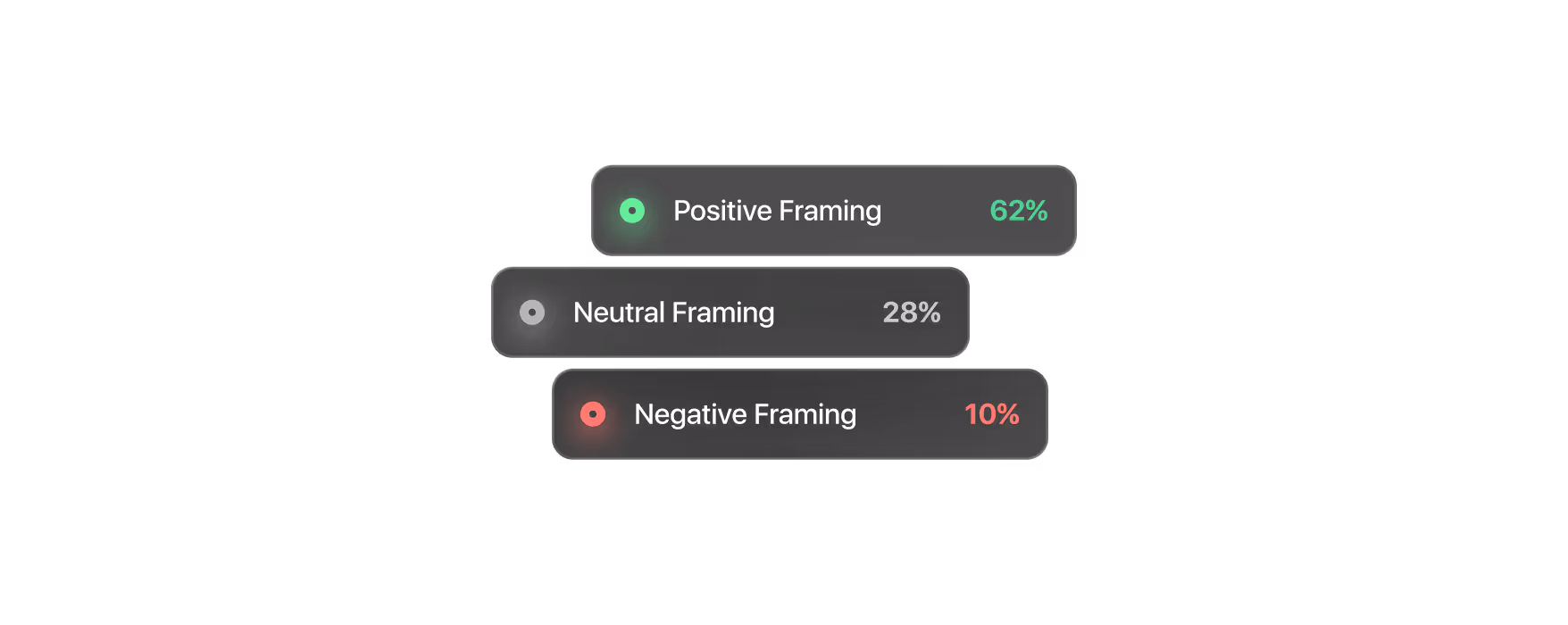 Identify whether your brand is framed positively, neutrally, or negatively when AI systems mention you.
