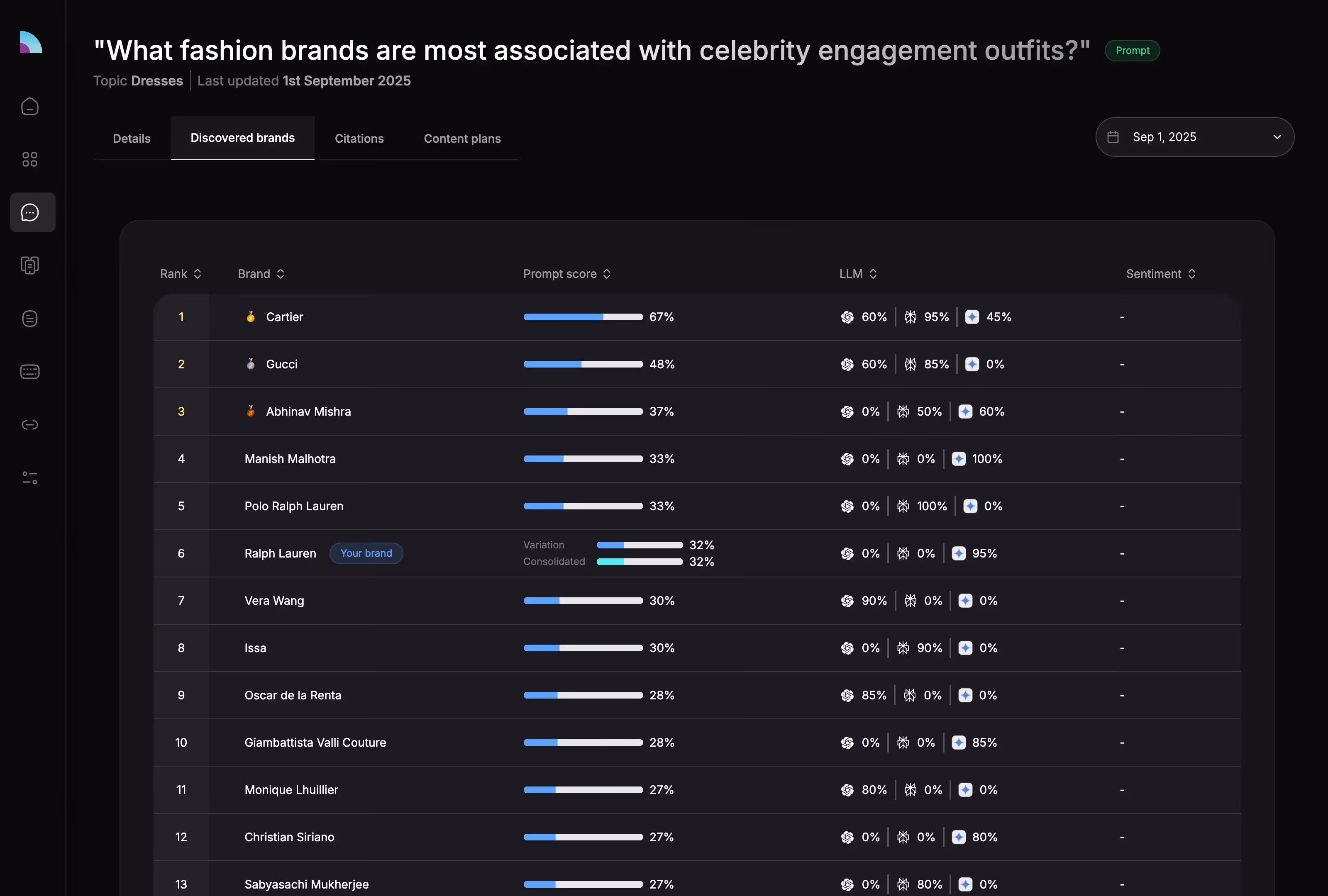 When asked “What fashion brands are most associated with celebrity engagement outfits?”, AI stuck to the cultural script. Cartier, Ralph Lauren, Dior, Gucci, Chanel, Manish Malhotra, the pantheon of prestige. These names define the red carpet and bridal couture.